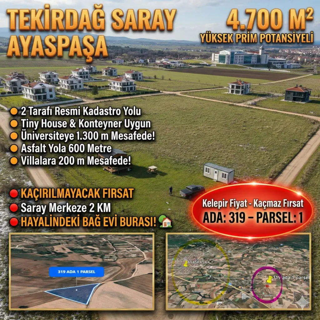 Tekirdağ Saray Ayaspaşa Satılık Tarla